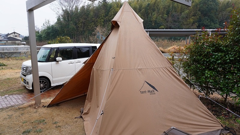 テントの前は半分開いています。