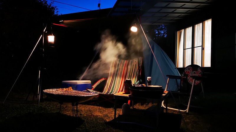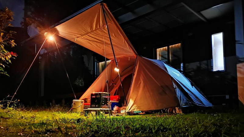 テントの中で火を扱う際は注意が必要です。