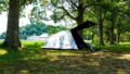 タープとハンモックが中央が良いです。開放的で涼しい張り方です。
