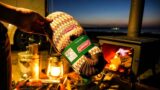 薪ストーブで暖まりながら食べます。