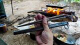 1240【キャンプ】取り皿やタレ入れに、Boundless Voyage チタン皿 ラウンド プレート 小皿を紹介する、焚き火で肉を焼く、鍋焼きうどんを作る