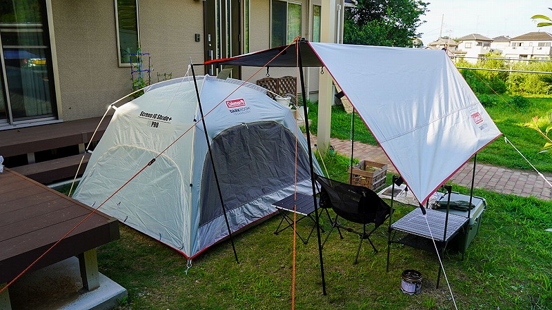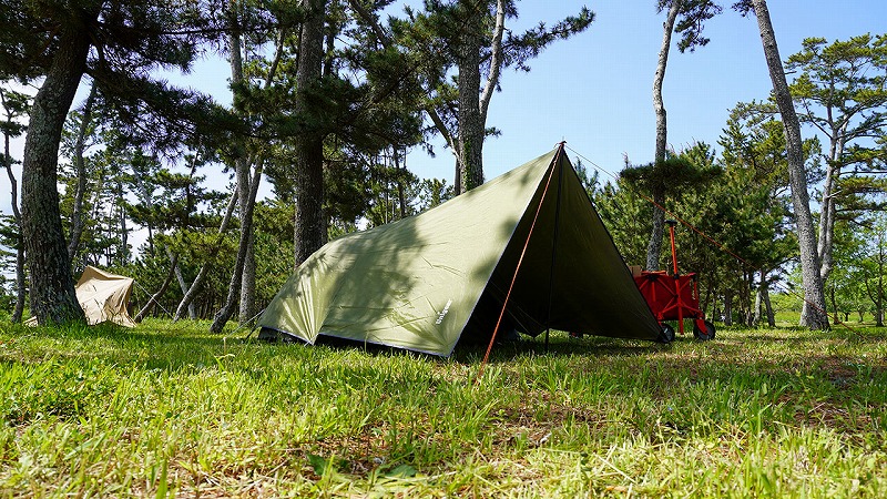 3.5×3.5mのタープを使いました。ポールは1本で約2mです。