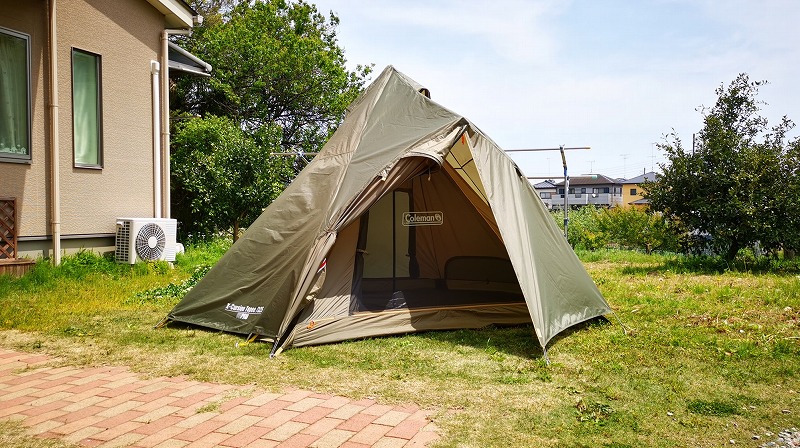 ポールを2本組み合わせて立てます。キャノピーを張ることができます。