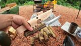 ソロキャンプでは余裕のあるサイズです。ふちを立ててペグを打ちました。